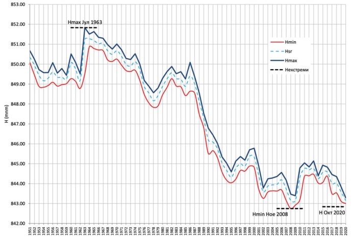 Figure 1. Changes in the water level of Lake Prespa from 1951-2020 (Source: UHMR)